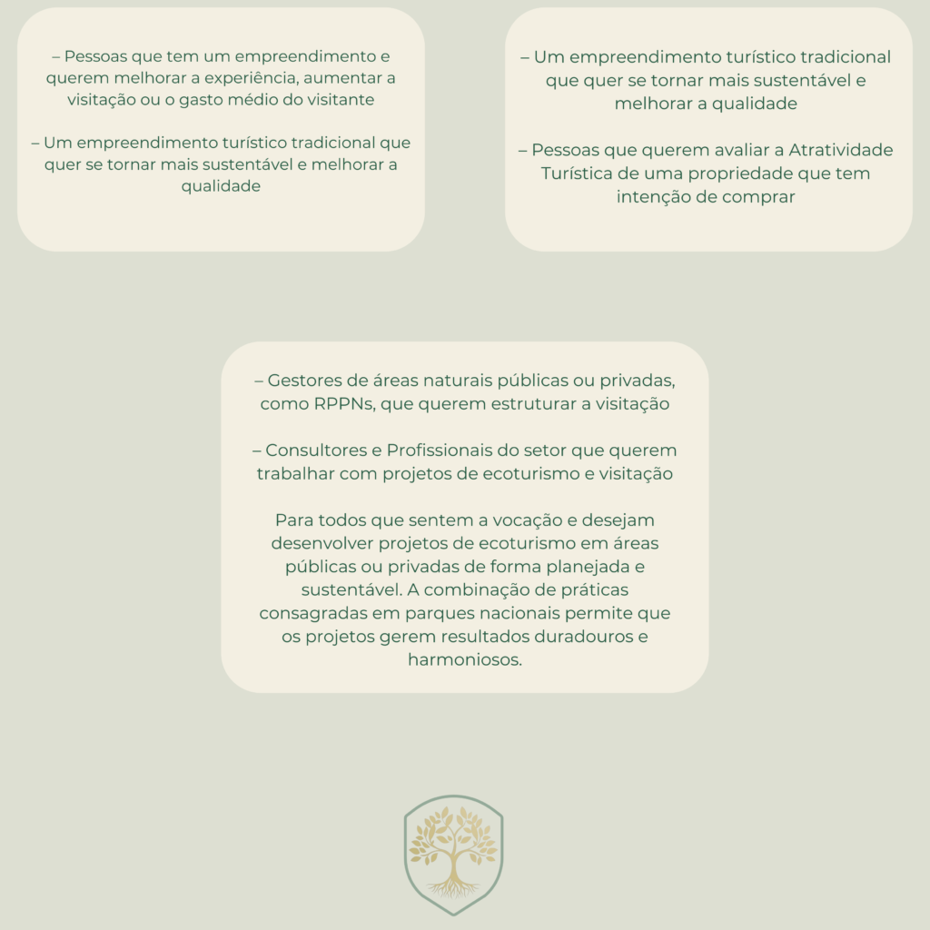 A transformação que queremos ver no mundo começa de dentro. Pense na oportunidade de criar experiências únicas que conectem as pessoas à Natureza, criando memórias duradouras e fidelizando visitantes