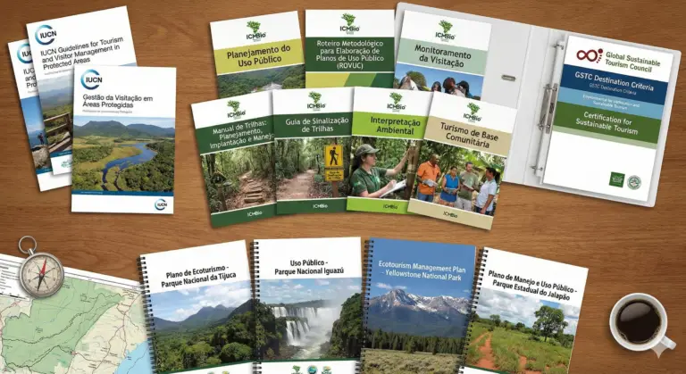 – Manuais do ICMBio sobre Planejamento do Uso Público, ROVUC, Monitoramento da Visitação, Trilhas, Sinalização, Interpretação e Turismo de Base Comunitária